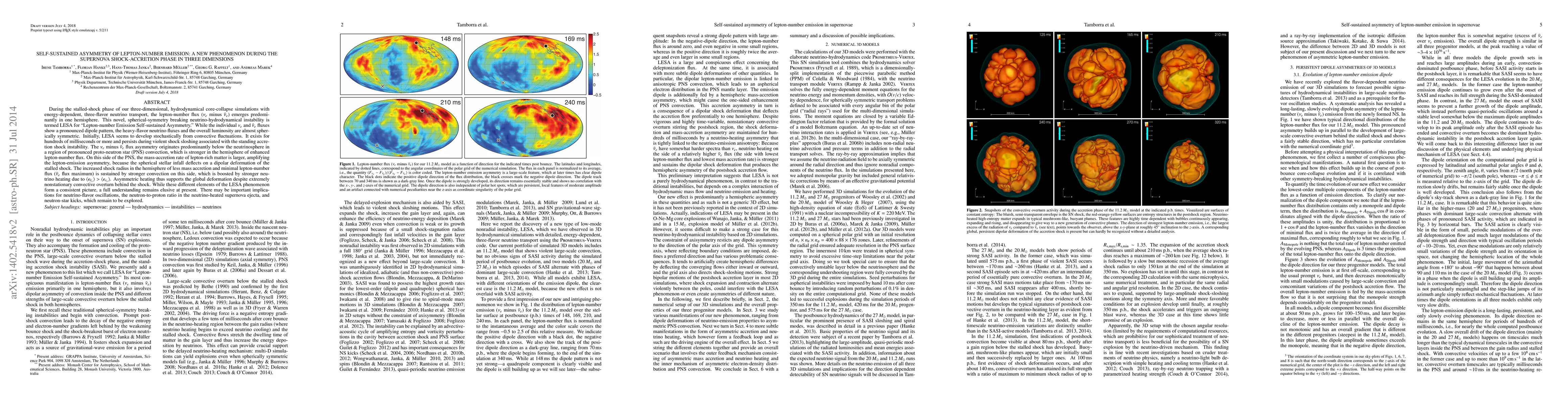 The study introduces and characterizes LESA, a self-sustained asymmetry in lepton-number emission during the supernova shock-accretion phase, observed in 3D simulations with energy-dependent, 3-flavor neutrino transport.