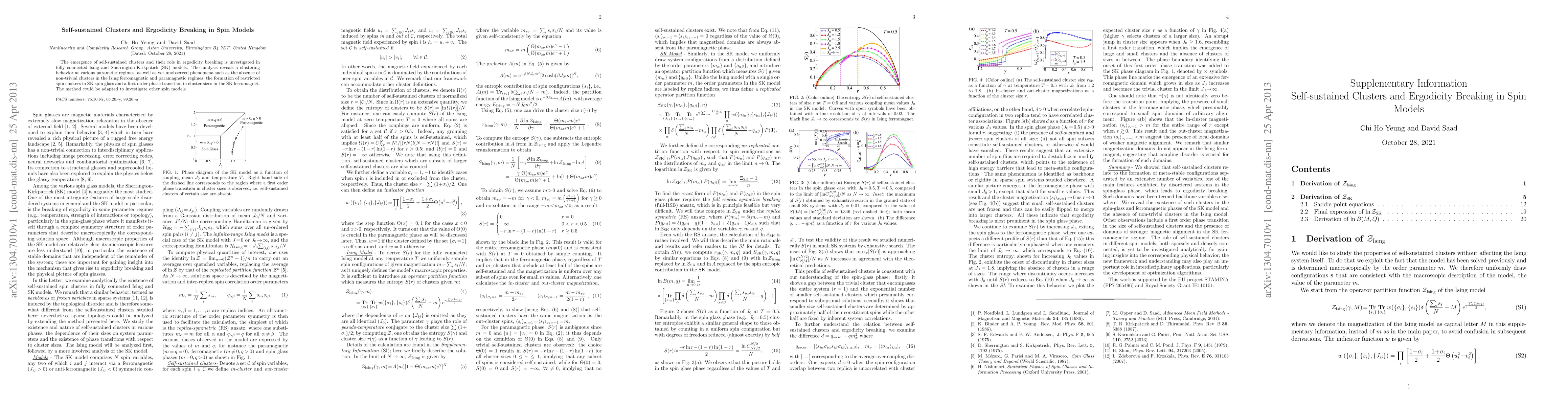 This paper investigates self-sustained clusters and their role in ergodicity breaking in fully connected Ising and Sherrington-Kirkpatrick models, revealing unique clustering behaviors and phenomena such as restricted spin clusters in spin glass and a first-order phase transition in cluster sizes in the ferromagnet. The findings could be extended to other spin models.