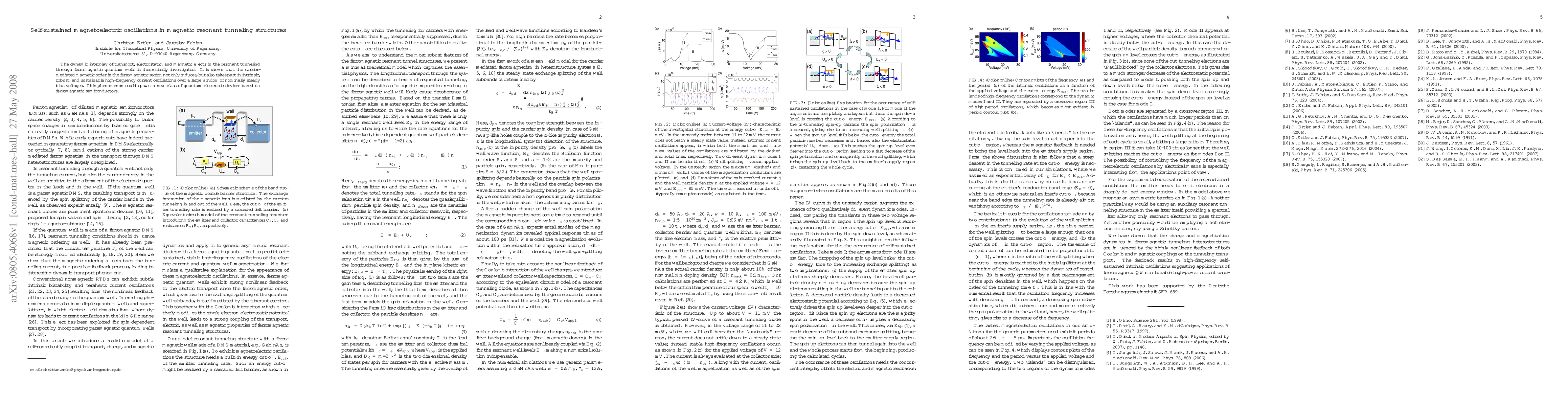 This paper investigates the dynamic interplay of transport, electrostatic, and magnetic effects in resonant tunneling through ferromagnetic quantum wells, revealing self-sustained magnetoelectric oscillations driven by carrier-mediated magnetic order. These oscillations could lead to the development of novel quantum electronic devices based on ferromagnetic semiconductors.