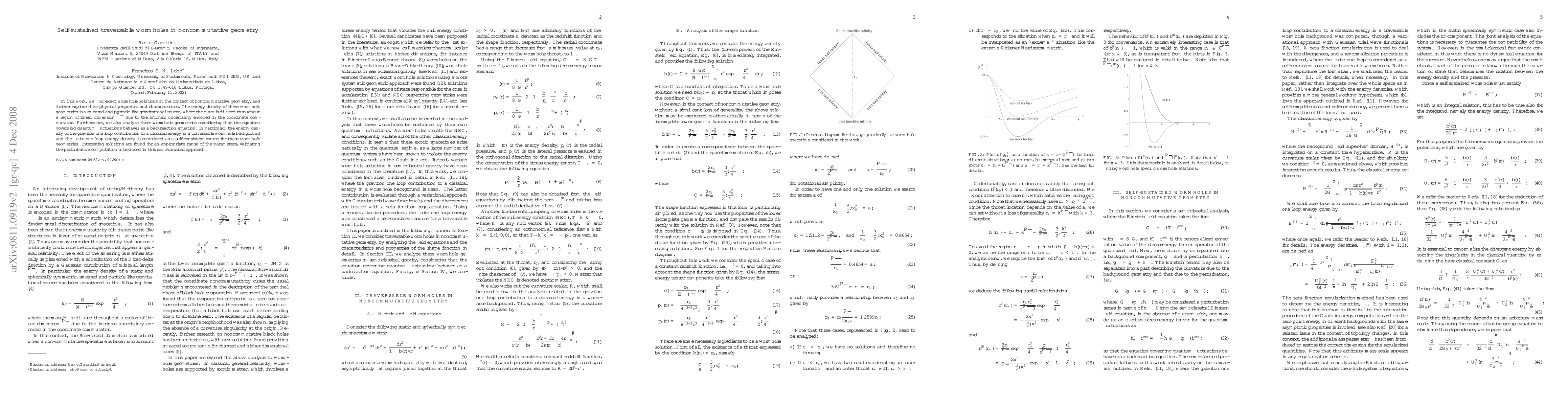 In this work, we find exact wormhole solutions in the context of noncommutative geometry, and further explore their physical properties and characteristics. The energy density of these wormhole geometries is a smeared and particle-like gravitational source, where the mass is diffused throughout a region of linear dimension $\sqrt{\alpha}$ due to the intrinsic uncertainty encoded in the coordinate commutator. Furthermore, we also analyze these wormhole geometries considering that the equation governing quantum fluctuations behaves as a backreaction equation. In particular, the energy density of the graviton one loop contribution to a classical energy in a traversable wormhole background and the finite one loop energy density is considered as a self-consistent source for these wormhole geometries. Interesting solutions are found for an appropriate range of the parameters, validating the perturbative computation introduced in this semi-classical approach.