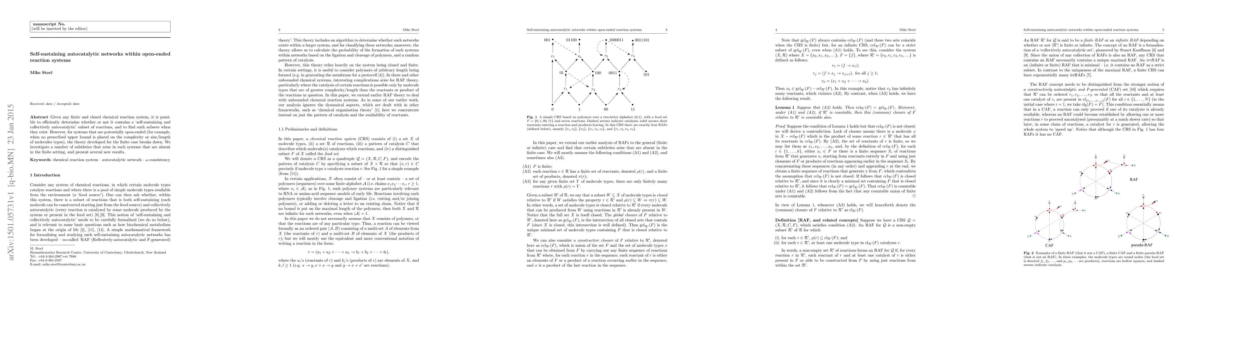 This paper explores the existence of self-sustaining autocatalytic networks in potentially open-ended chemical reaction systems, addressing the breakdown of existing finite theory and presenting new results to tackle these complexities.