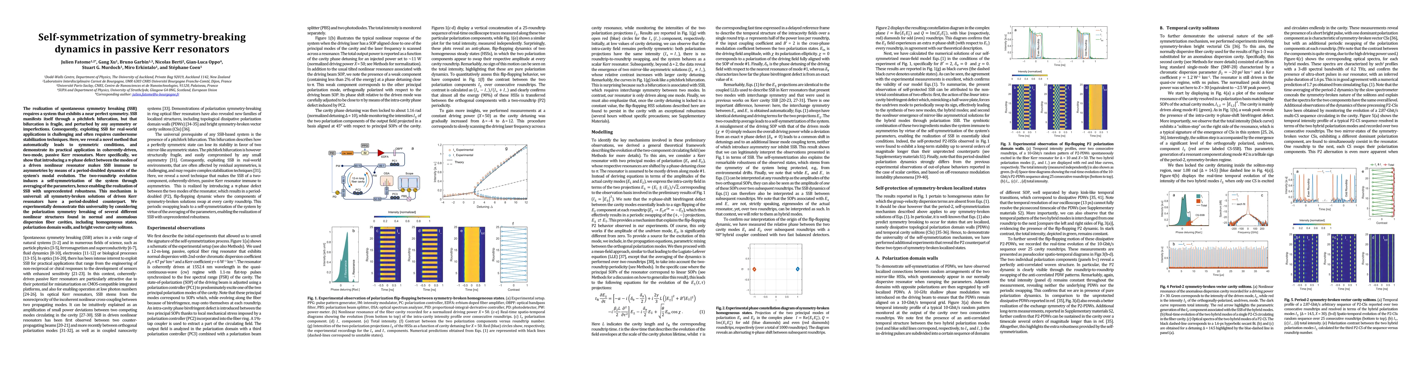 This paper introduces a method to achieve spontaneous symmetry breaking (SSB) in passive Kerr resonators by inducing a $\pi$-phase defect, which leads to self-symmetrization and robustness against asymmetries. Experimentally, this technique is shown to work across various nonlinear structures in fiber cavities.