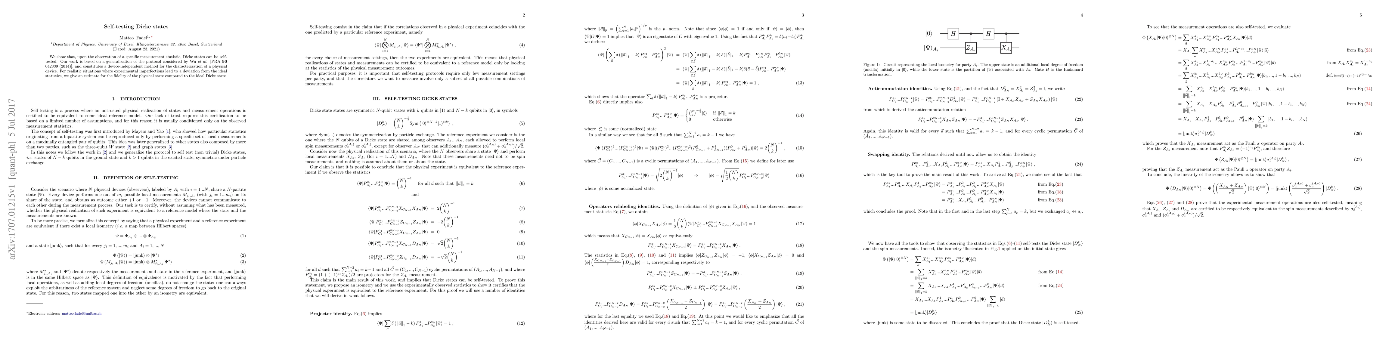 Researchers demonstrate a method to self-test Dicke states using measurement statistics, allowing for device-independent characterization of physical devices with fidelity estimates in realistic experimental settings.