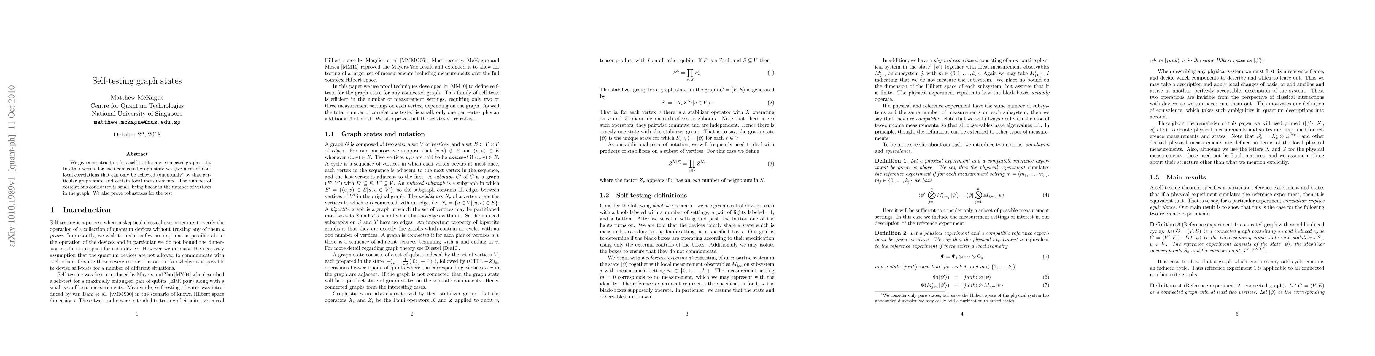 Researchers developed a method to test specific quantum states of connected graphs using non-local correlations, which can only occur under that particular state. This test is robust and requires a small number of measurements proportional to the graph's vertices.