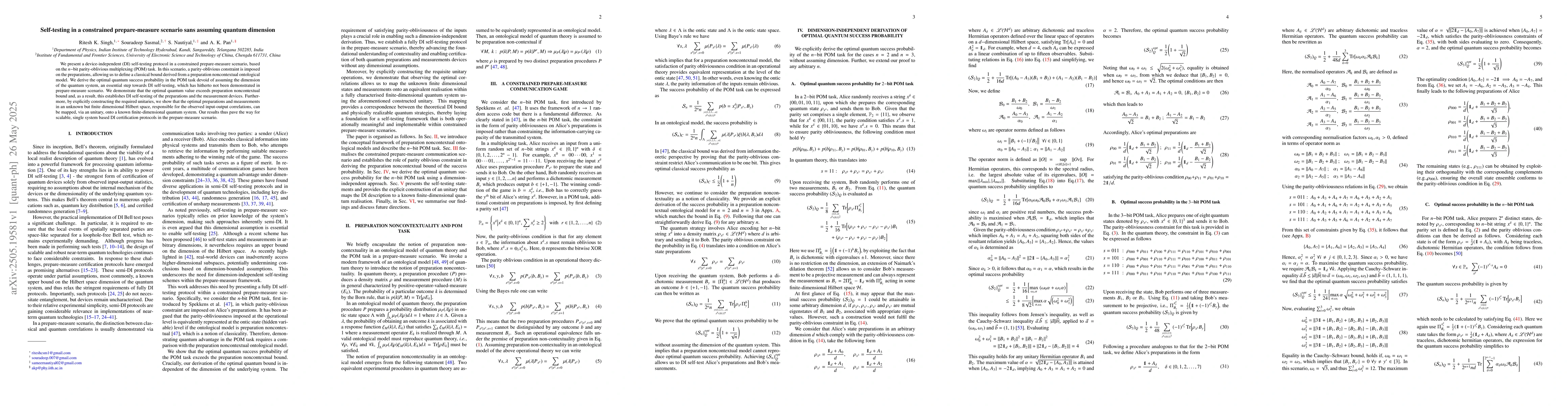 Researchers developed a device-independent self-testing protocol in a constrained prepare-measure scenario without assuming the dimension of the quantum system, achieving optimal quantum success probability and paving the way for scalable single-system certification protocols.