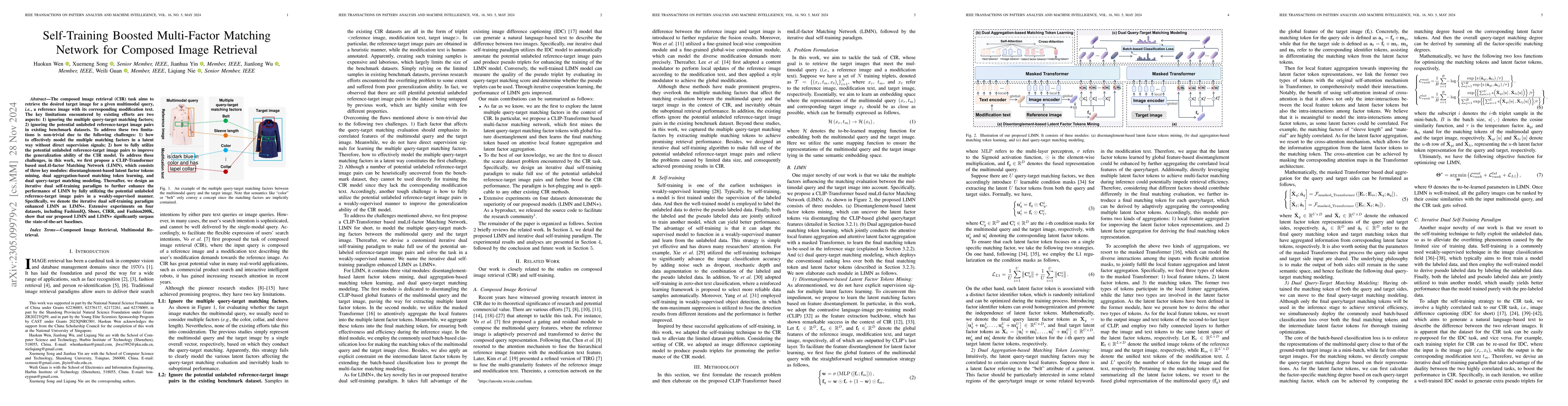 The paper proposes a self-training boosted multi-faceted matching network (LIMN+) for composed image retrieval, addressing the limitations of existing methods by modeling multi-faceted matching factors and leveraging unlabeled image pairs. The method significantly outperforms state-of-the-art baselines on three datasets.