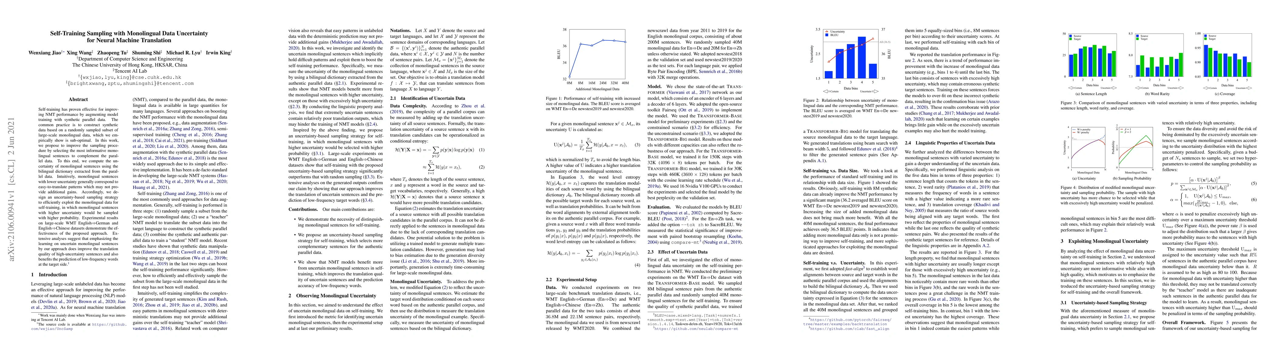 This research paper proposes a new method for improving neural machine translation by selectively using monolingual data with high uncertainty for self-training. Experimental results show improved translation quality and word prediction for low-frequency words.
