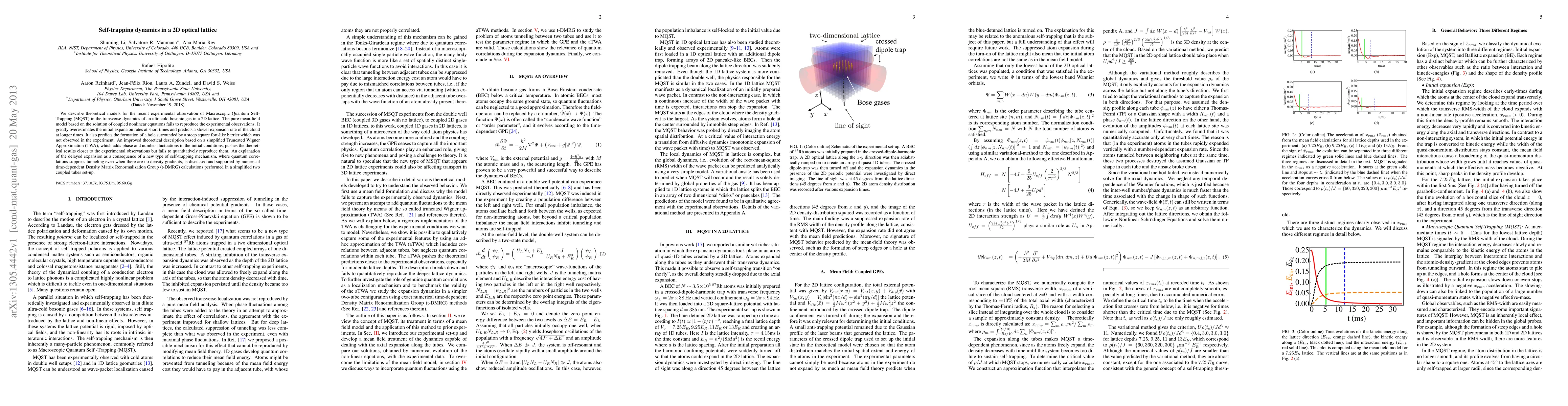 We describe theoretical models for the recent experimental observation of Macroscopic Quantum Self-Trapping (MQST) in the transverse dynamics of an ultracold bosonic gas in a 2D lattice. The pure mean-field model based on the solution of coupled nonlinear equations fails to reproduce the experimental observations. It greatly overestimates the initial expansion rates at short times and predicts a slower expansion rate of the cloud at longer times. It also predicts the formation of a hole surrounded by a steep square fort-like barrier which was not observed in the experiment. An improved theoretical description based on a simplified Truncated Wigner Approximation (TWA), which adds phase and number fluctuations in the initial conditions, pushes the theoretical results closer to the experimental observations but fails to quantitatively reproduce them. An explanation of the delayed expansion as a consequence of a new type of self-trapping mechanism, where quantum correlations suppress tunneling even when there are no density gradients, is discussed and supported by numerical time-dependent Density Matrix Renormalization Group (t-DMRG) calculations performed in a simplified two coupled tubes set-up.
