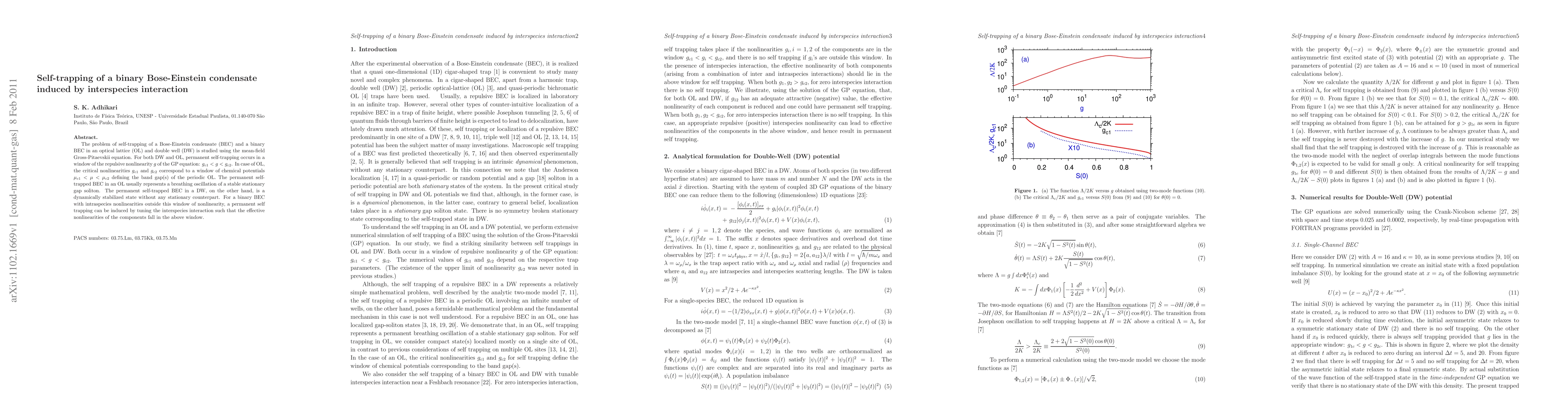 The problem of self-trapping of a Bose-Einstein condensate (BEC) and a binary