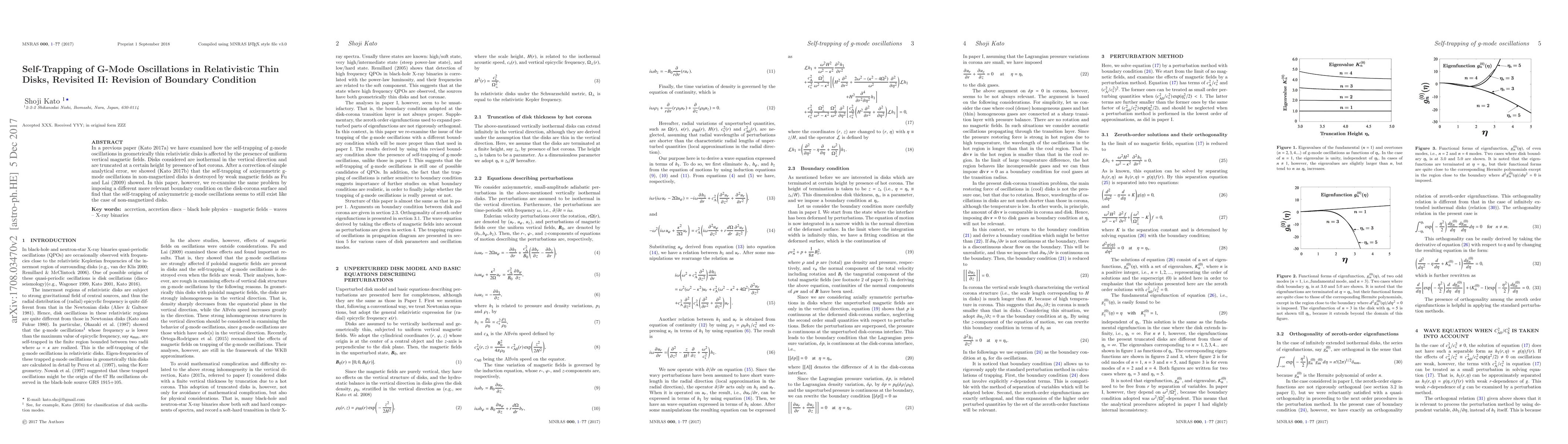 This paper revisits the self-trapping of g-mode oscillations in relativistic thin disks, correcting an analytical error and revising the boundary condition at the disk-corona interface. It finds that despite the presence of weak magnetic fields, the self-trapping of axisymmetric g-mode oscillations persists, similar to non-magnetized disks.