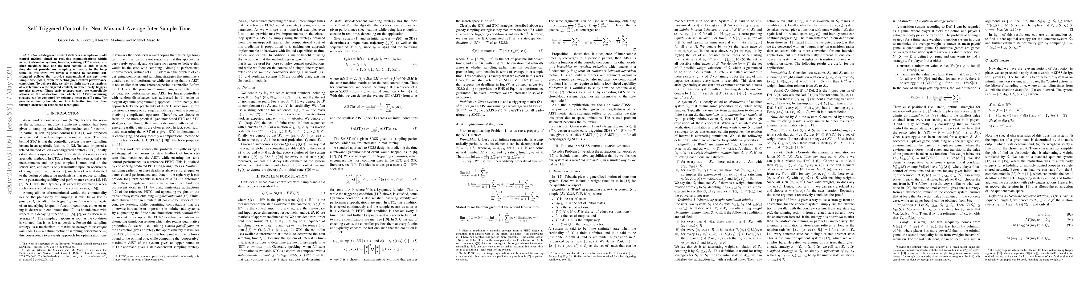 Self-triggered control (STC) is a sample-and-hold control method aimed at reducing communications within networked-control systems; however, existing STC mechanisms often maximize how late the next sample is, and as such they do not provide any sampling optimality in the long-term. In this work, we devise a method to construct self-triggered policies that provide near-maximal average inter-sample time (AIST) while respecting given control performance constraints. To achieve this, we rely on finite-state abstractions of a reference event-triggered control, in which early triggers are also allowed. These early triggers constitute controllable actions of the abstraction, for which an AIST-maximizing strategy can be computed by solving a mean-payoff game. We provide optimality bounds, and how to further improve them through abstraction refinement techniques.