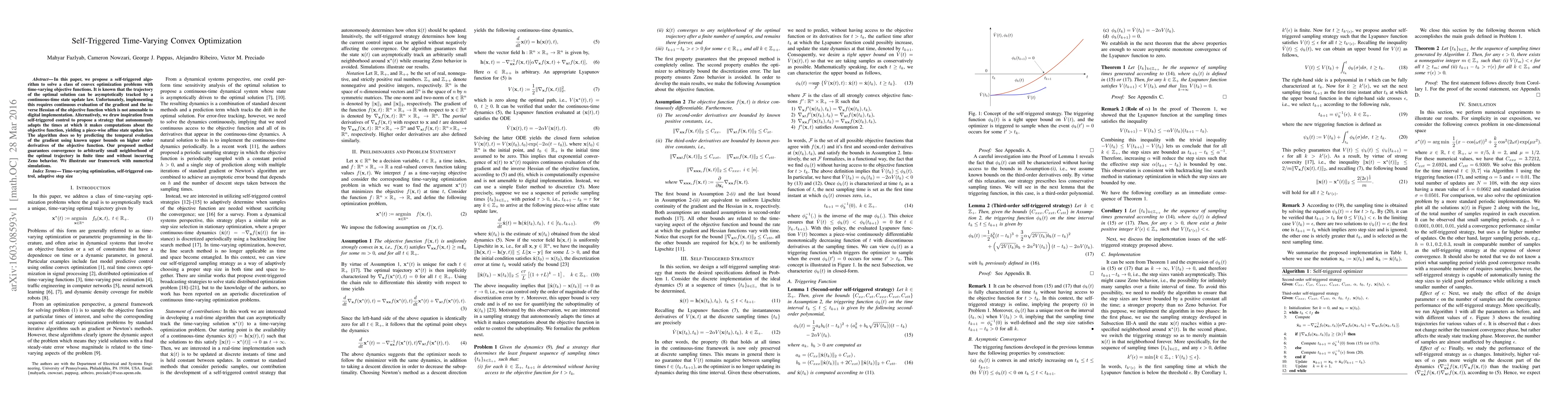 Researchers propose a self-triggered algorithm to solve time-varying convex optimization problems without continuous gradient evaluation, leveraging predictions of temporal evolution instead.