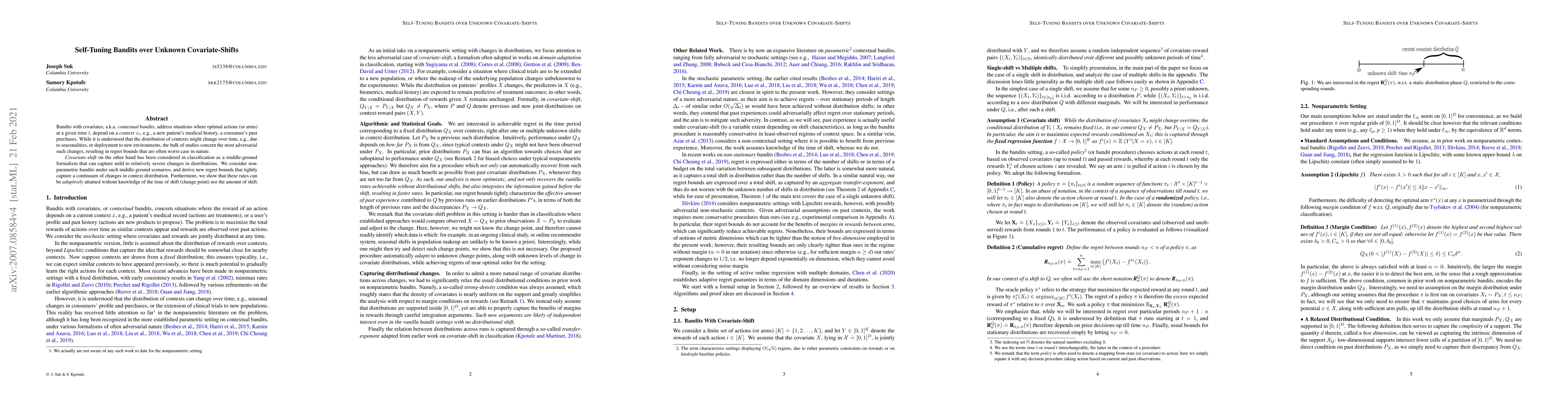 This research paper introduces a new framework for nonparametric bandits that can adapt to mild to severe changes in context distributions, providing tighter regret bounds than existing methods. The approach allows for adaptive performance without prior knowledge of the shift time or amount.