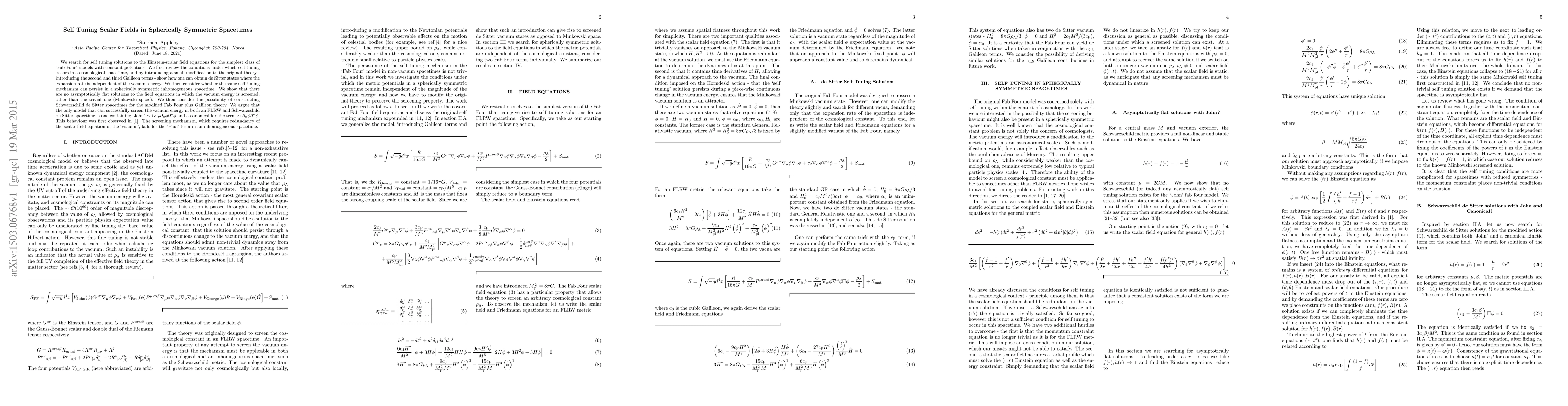 This paper explores self-tuning scalar field solutions in spherically symmetric spacetimes, finding no non-trivial vacuum energy screening in asymptotically flat spacetimes. It identifies that a specific combination of 'John' and canonical kinetic terms successfully screens vacuum energy in both FLRW and Schwarzschild de Sitter spacetimes, a behavior previously observed.