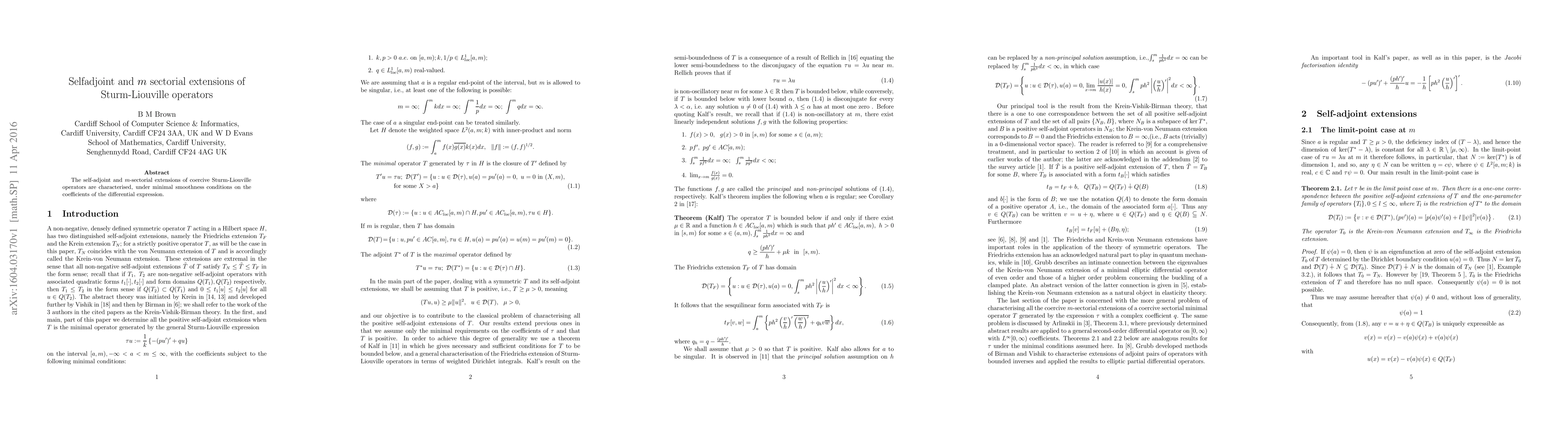 Summary: This paper characterizes the self-adjoint and $m$-sectorial extensions of coercive Sturm-Liouville operators, focusing on minimal smoothness conditions for the differential expression coefficients. The study provides a comprehensive framework for understanding these extensions.