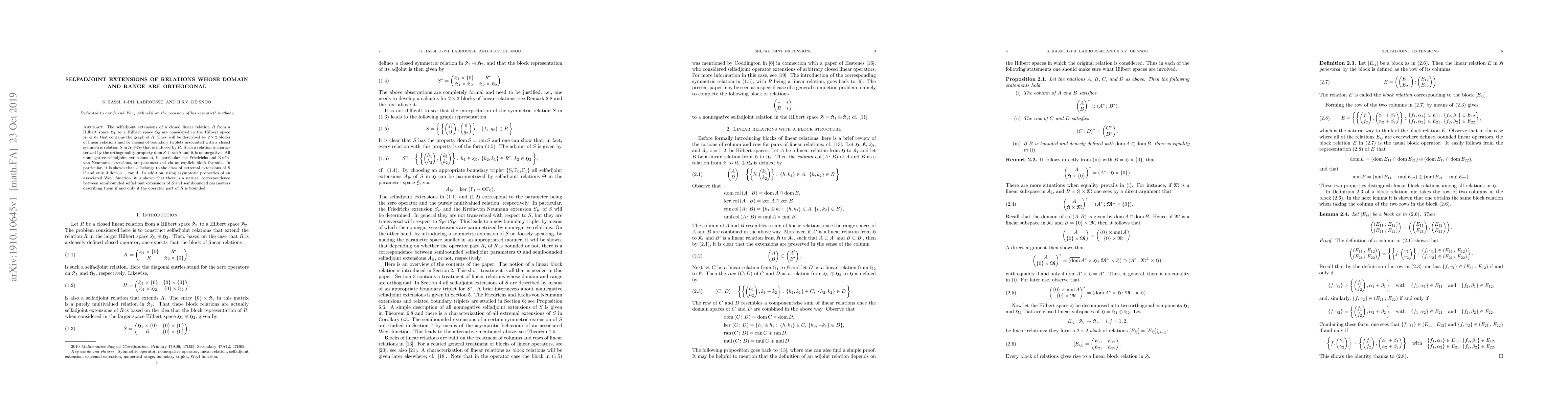 This paper explores selfadjoint extensions of closed linear relations between orthogonal Hilbert spaces, describing them using $2 \times 2$ block relations and boundary triplets. It establishes an explicit block formula for nonnegative selfadjoint extensions, demonstrating their extremality and correspondence with semibounded parameters under certain conditions.
