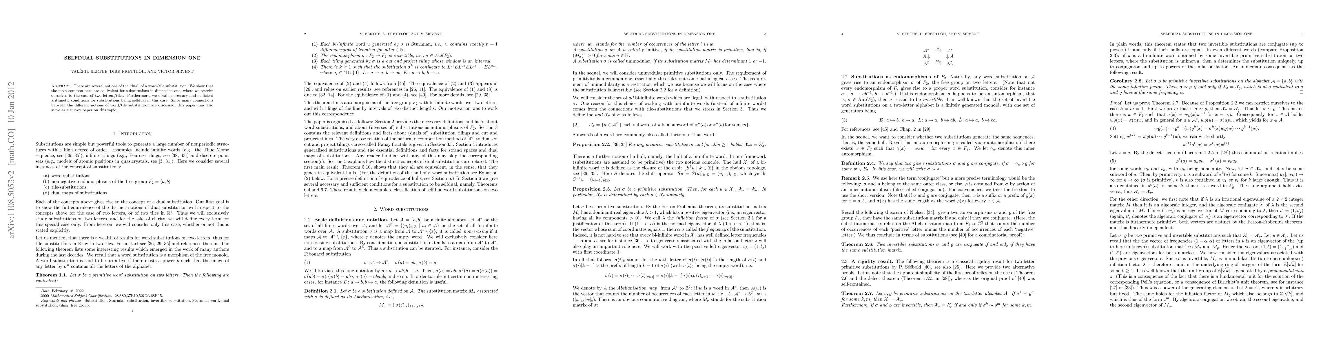 Researchers show that common notions of word/tile substitution duality are equivalent in dimension one for two-letter substitutions, establishing necessary arithmetic conditions for selfdual substitutions.