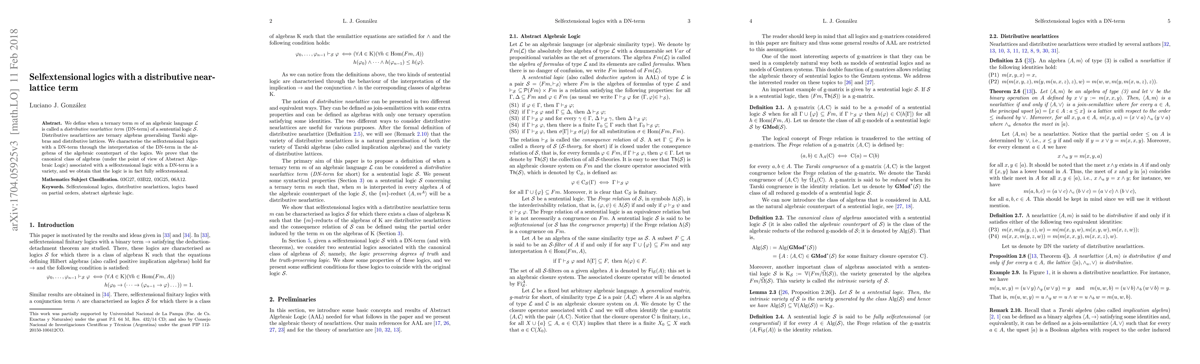 This paper defines distributive nearlattice terms (DN-terms) within algebraic languages and characterizes selfextensional logics incorporating these terms. It proves that the associated algebraic structures form a variety, confirming the logics as fully selfextensional.