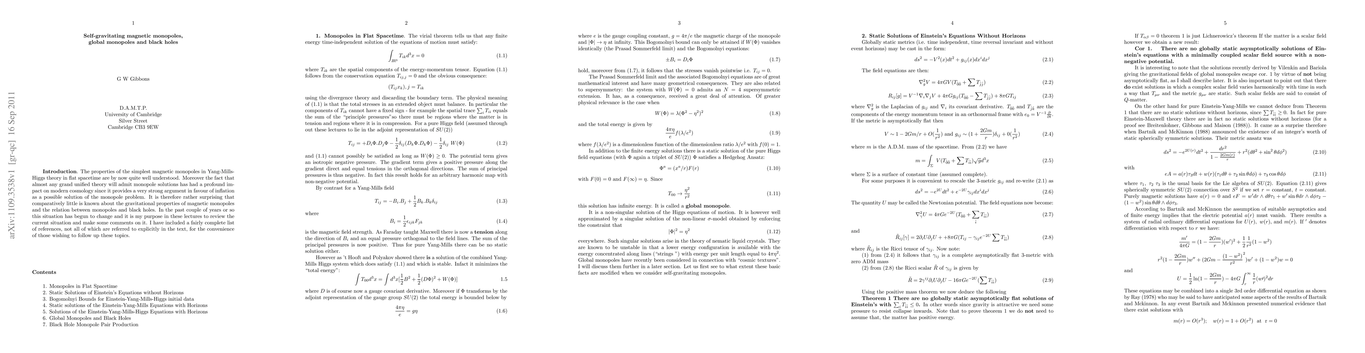 This paper discusses the theoretical framework of self-gravitating magnetic monopoles, global monopoles, and their implications for black holes, providing insights from lectures delivered in 1990 that remain relevant in modern theoretical physics. The work explores the complex interplay between gravitational, magnetic, and topological fields in cosmological contexts.