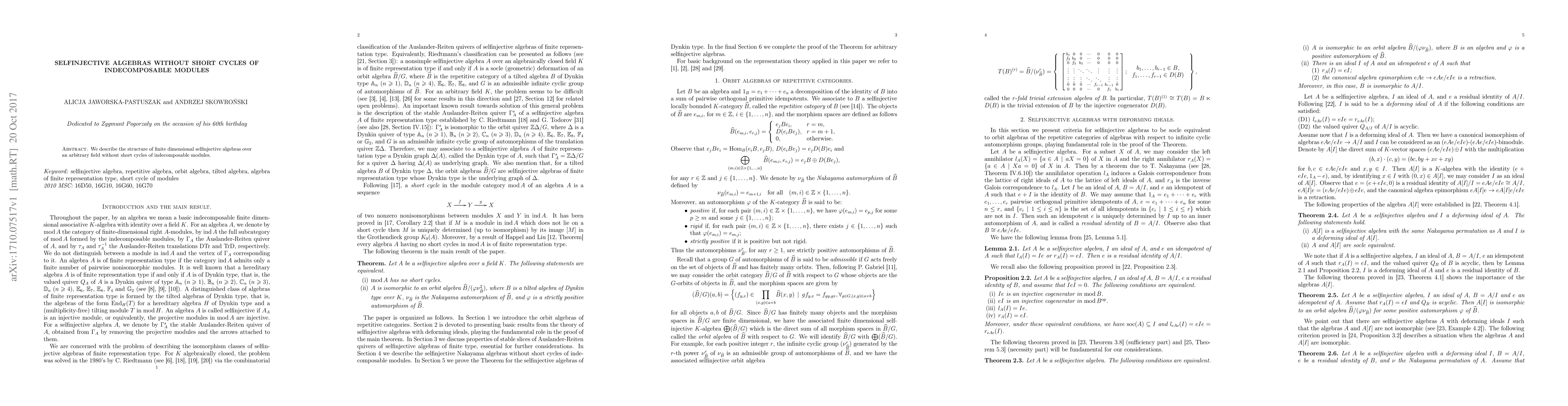 Summary: This paper investigates the structural characteristics of finite dimensional selfinjective algebras over any field, focusing on those without short cycles of indecomposable modules. The findings provide insights into the internal organization and module theory of such algebras.