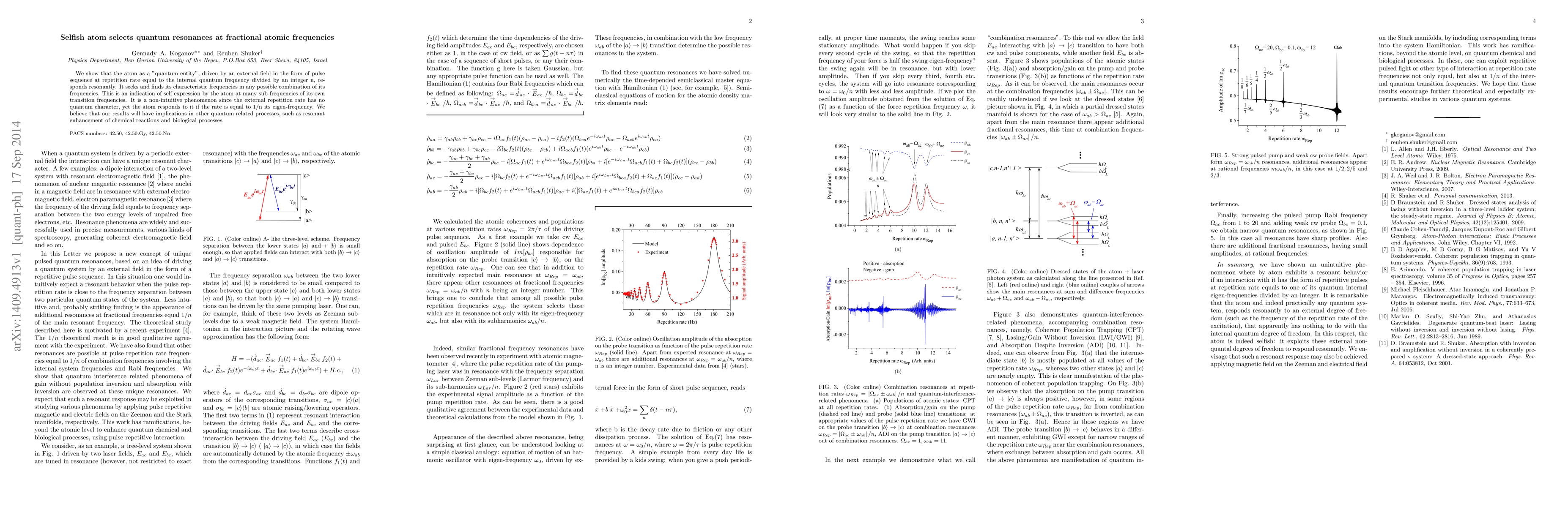 An atom responds to a pulse sequence with a repetition rate equal to its internal quantum frequency divided by an integer, showing self-expression at multiple sub-frequencies.
