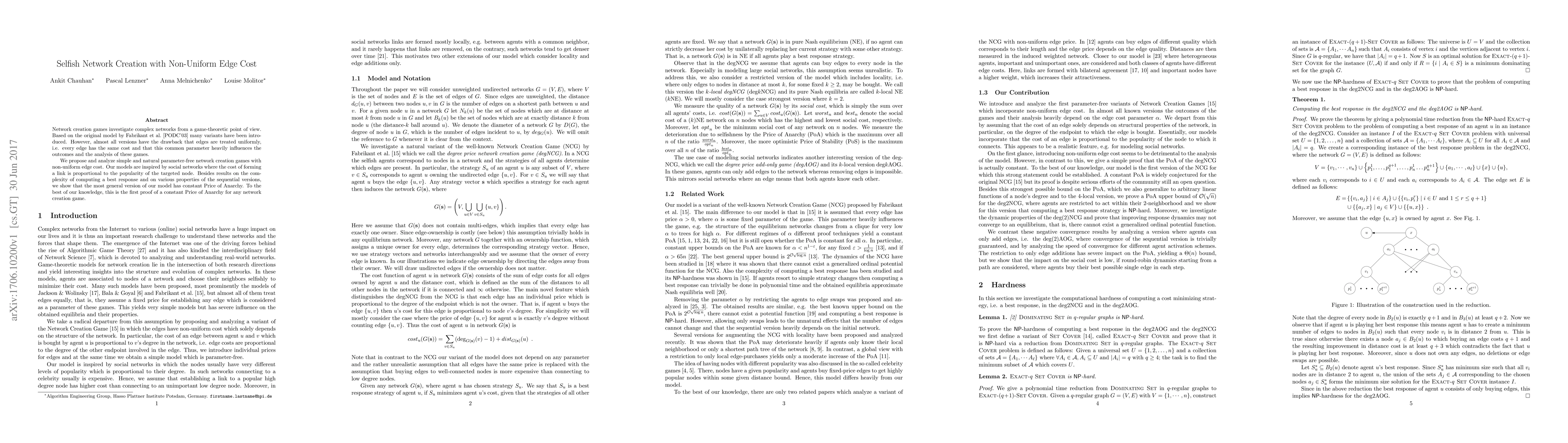 Researchers created a new network creation game model with non-uniform edge cost, showing that the most general version has constant Price of Anarchy, a first in any network creation game.