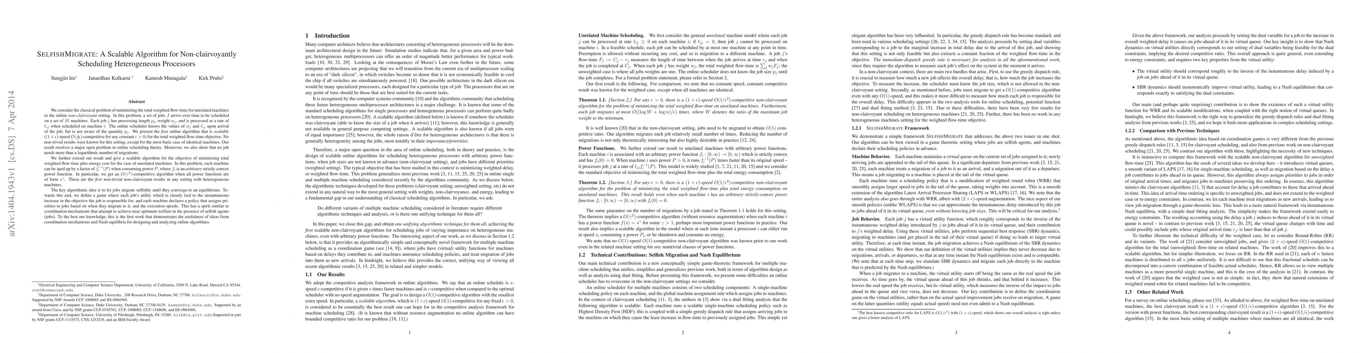 This paper presents a scalable algorithm for scheduling unrelated jobs on heterogeneous processors in an online setting, achieving $(1+rac{1}{ ho})$-competitiveness and resolving a major open problem in online scheduling theory.