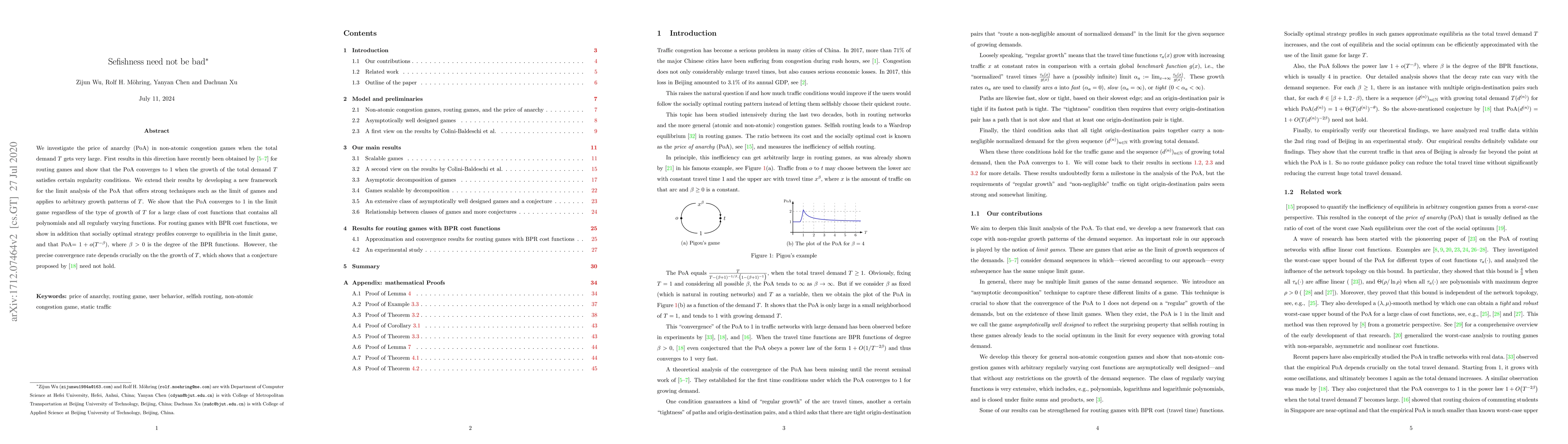 A new framework shows that in large-scale congestion games, selfishness leads to a price of anarchy converging to 1, regardless of the type of growth pattern in demand, and even for complex cost functions like polynomial and regularly varying ones.