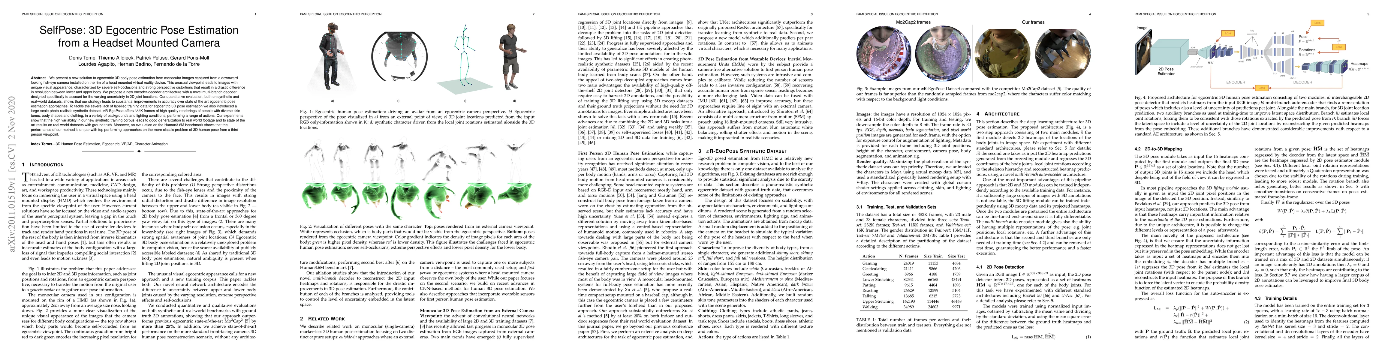 This paper proposes a novel encoder-decoder architecture for 3D egocentric pose estimation from monocular fish-eye images captured by a head-mounted VR device, addressing unique challenges like self-occlusions and perspective distortions. The method leverages a synthetic dataset to improve generalization and achieves state-of-the-art results on both synthetic and real-world datasets.