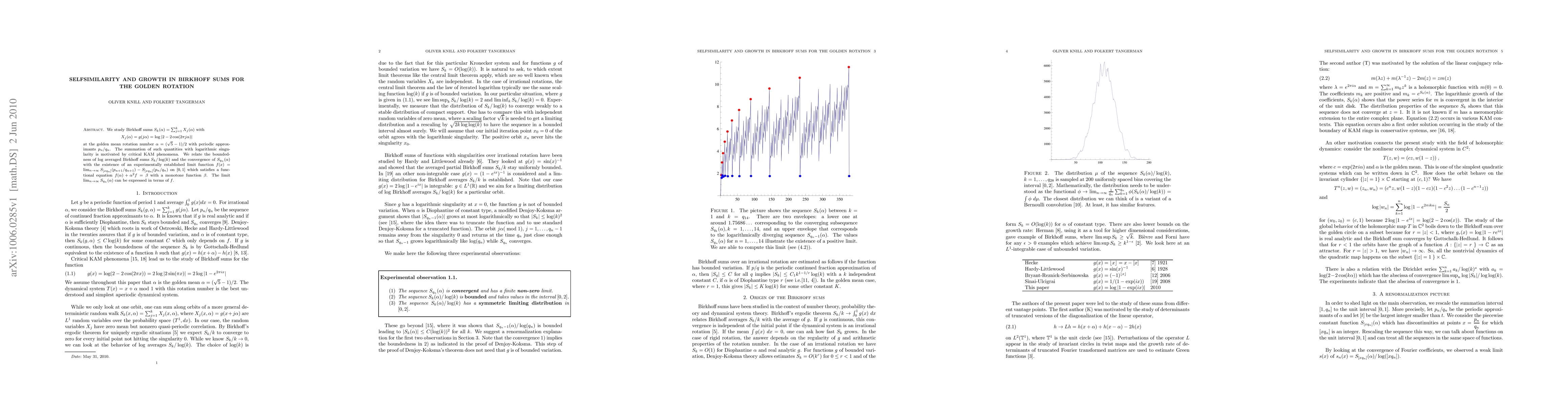 This paper investigates Birkhoff sums at the golden mean rotation, examining their self-similarity and growth through periodic continued fraction approximations. It links the boundedness of log-averaged sums and their convergence to an experimentally established limit function, revealing a functional equation satisfied by this limit function.