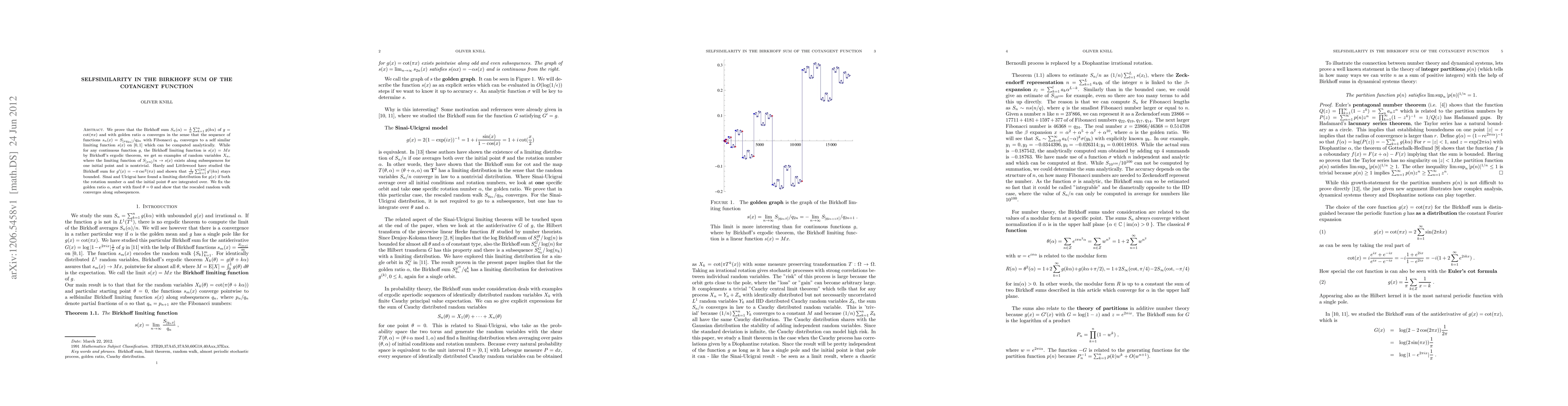 We prove that the Birkhoff sum S(n)/n = (1/n) sum_(k=1)^(n-1) g(k A) with g(x) = cot(Pi x) and golden ratio A converges in the sense that the sequence of functions s(x) = S([ x q(2n)])/q(2n) with Fibonacci numbers q(n) converges to a self similar limiting function s(x) on [0,1]. The function s(x) can be computed analytically. This allows to determine values like S(10^100)/10^100 accurately without that it ever would be possible to add up so many terms for this random walk. The random variables added up are Cauchy distributed random variables with almost periodic correlation. While for any continuous function g, the Birkhoff limiting function is s(x)=M x by Birkhoff's ergodic theorem, we get so examples of random variables X(n), where the limiting function of S([x n])/n converges to a nontrivial selfsimilar function s(x) along subsequences for one initial point. Hardy and Littlewood have studied the Birkhoff sum for g'(x)= -Pi csc^2(Pi x) and shown that the corresponding Birkhoff sum S'(n)/n^2 stays bounded. Sinai and Ulcigrai have found a limiting distribution for g(x) if both the rotation number A and the initial point t are integrated over. We fix the golden ratio A, start with fixed t=0 and show that the rescaled random walk converges along subsequences. The analysis sheds light on the pictures seen in previous papers with Lesieutre and Tangerman on the antiderivative G(x).
