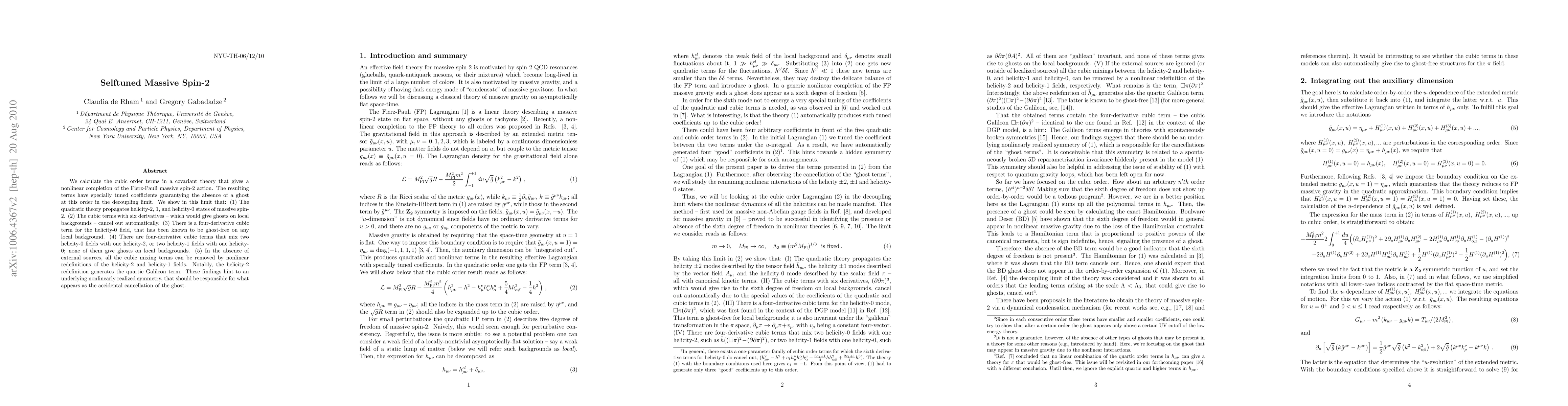 Researchers discover a self-tuned massive spin-2 theory that cancels ghost particles in cubic terms, allowing for the propagation of various helicity states without ghosts.