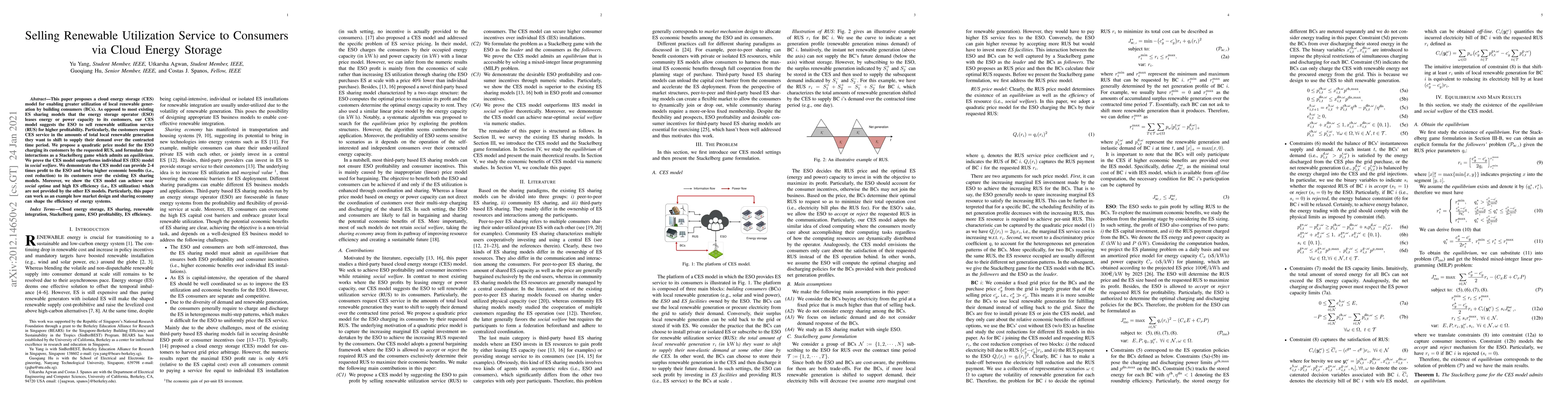 This paper introduces a cloud energy storage model that allows energy storage operators to sell renewable utilization services to consumers, achieving higher profits and cost reductions for consumers compared to existing models. The proposed model outperforms individual energy storage and existing sharing models in terms of social welfare, profit, and energy storage efficiency.