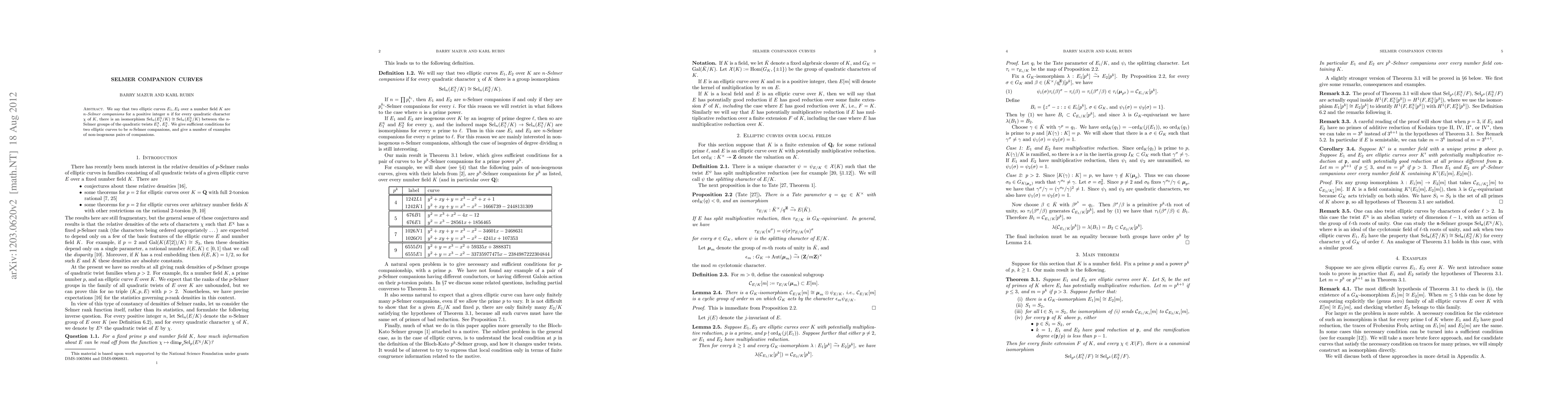 This paper introduces the concept of n-Selmer companions for elliptic curves over number fields, establishing conditions for two curves to be companions and providing examples of non-isogenous pairs.