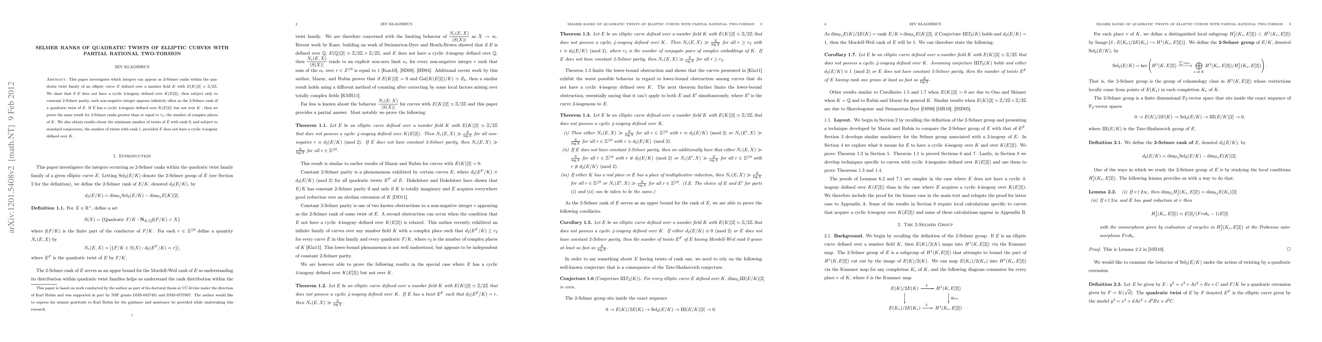 This paper explores the 2-Selmer ranks of quadratic twists of elliptic curves with partial rational two-torsion. It demonstrates that under certain isogeny conditions, each non-negative integer can appear infinitely often as the 2-Selmer rank of a twist.