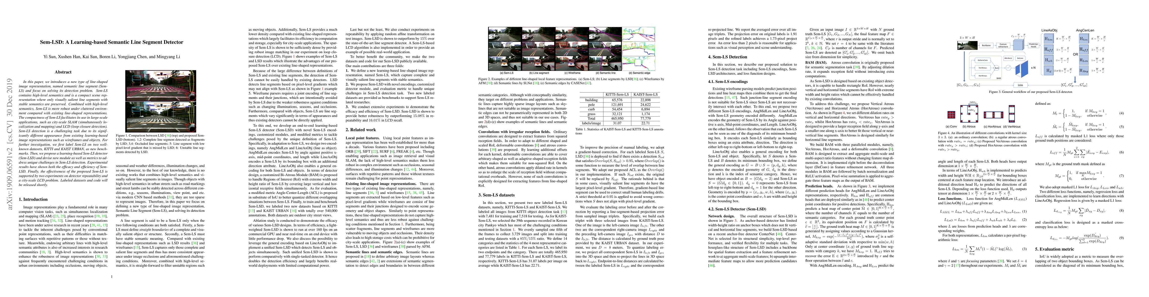 This paper introduces a new semantic line segment (Sem-LS) representation that preserves salient line segments with stable semantics for robust scene representation. The proposed learning-based Sem-LS detector (Sem-LSD) addresses unique challenges in detecting Sem-LS, demonstrating efficacy and efficiency through experiments on KITTI and KAIST URBAN datasets.