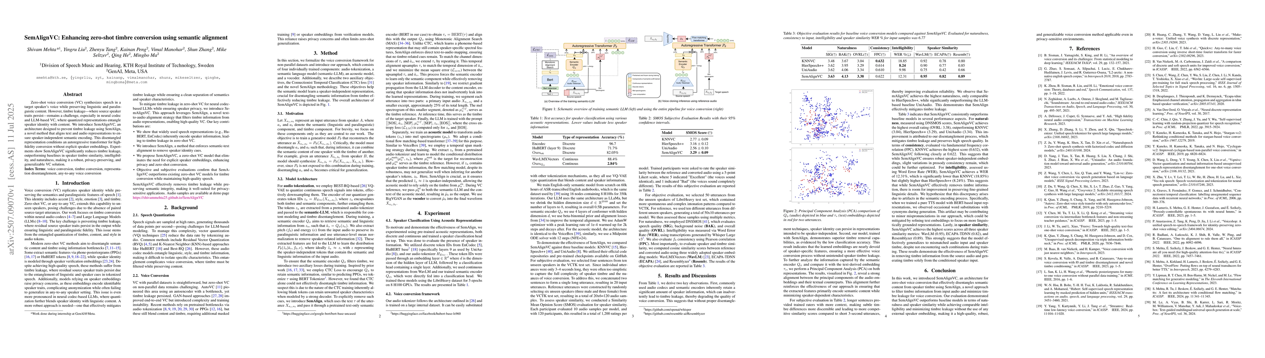 Zero-shot voice conversion (VC) synthesizes speech in a target speaker's voice while preserving linguistic and paralinguistic content. However, timbre leakage-where source speaker traits persist-remains a challenge, especially in neural codec and LLM-based VC, where quantized representations entangle speaker identity with content. We introduce SemAlignVC, an architecture designed to prevent timbre leakage using SemAlign, a novel method that aligns text and audio representations to ensure speaker-independent semantic encoding. This disentangled representation conditions an autoregressive transformer for high-fidelity conversion without explicit speaker embeddings. Experiments show SemAlignVC significantly reduces timbre leakage, outperforming baselines in speaker timbre similarity, intelligibility, and naturalness, making it a robust, privacy-preserving, and generalizable VC solution. Audio samples can be accessed at https://shivammehta25.github.io/SemAlignVC/