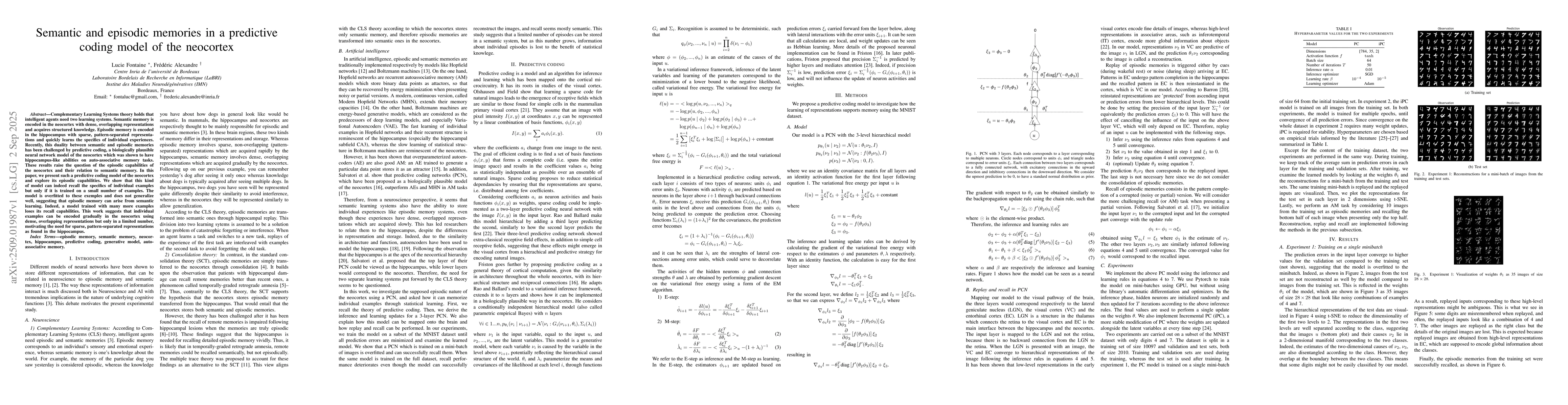 Complementary Learning Systems theory holds that intelligent agents need two learning systems. Semantic memory is encoded in the neocortex with dense, overlapping representations and acquires structured knowledge. Episodic memory is encoded in the hippocampus with sparse, pattern-separated representations and quickly learns the specifics of individual experiences. Recently, this duality between semantic and episodic memories has been challenged by predictive coding, a biologically plausible neural network model of the neocortex which was shown to have hippocampus-like abilities on auto-associative memory tasks. These results raise the question of the episodic capabilities of the neocortex and their relation to semantic memory. In this paper, we present such a predictive coding model of the neocortex and explore its episodic capabilities. We show that this kind of model can indeed recall the specifics of individual examples but only if it is trained on a small number of examples. The model is overfitted to these exemples and does not generalize well, suggesting that episodic memory can arise from semantic learning. Indeed, a model trained with many more examples loses its recall capabilities. This work suggests that individual examples can be encoded gradually in the neocortex using dense, overlapping representations but only in a limited number, motivating the need for sparse, pattern-separated representations as found in the hippocampus.