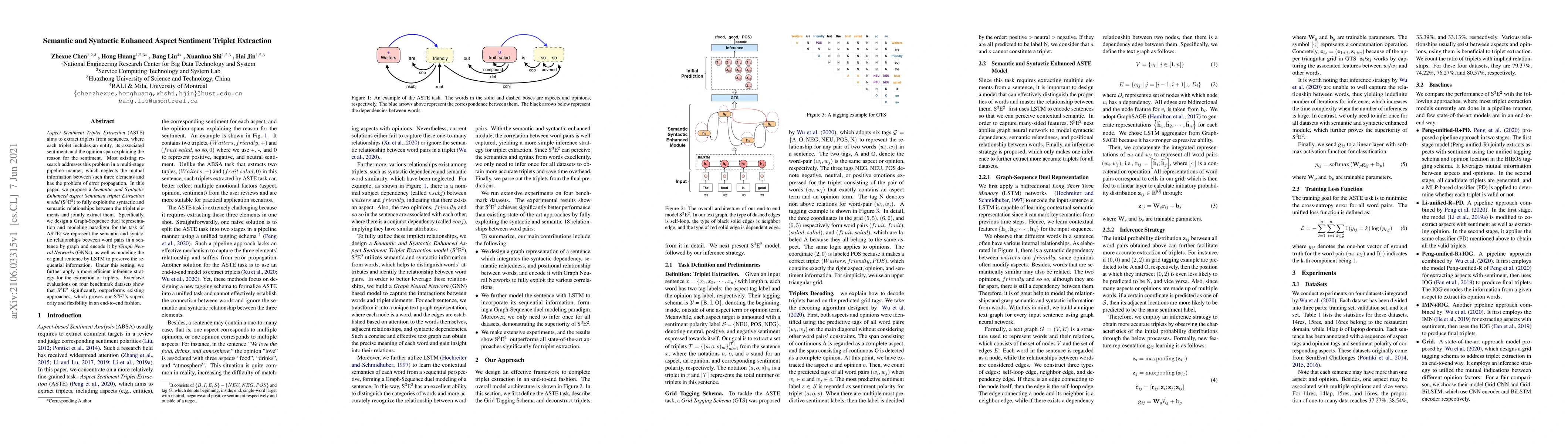This paper proposes a Semantic and Syntactic Enhanced aspect Sentiment Triplet Extraction model (S3E2) that jointly extracts triplets by leveraging syntactic and semantic relationships through graph representation and modeling, outperforming existing multi-stage methods. The model uses Graph Neural Networks and LSTM to capture both graph and sequential information, achieving superior results on four benchmark datasets.