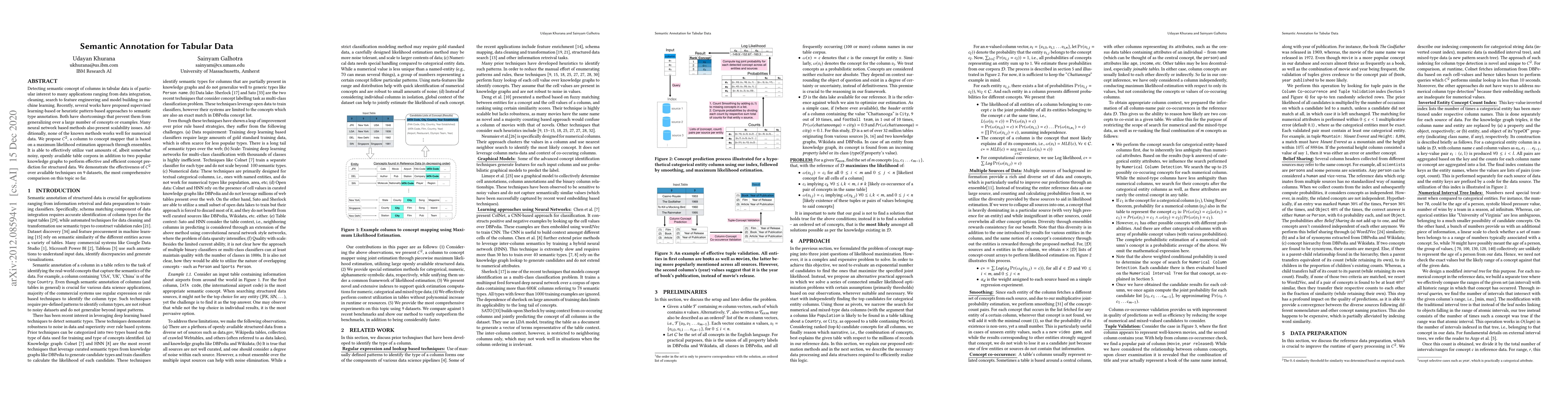 The paper proposes $C^2$, a maximum likelihood estimation-based ensemble mapper for semantic annotation of tabular data columns, which leverages large, noisy corpora and knowledge graphs for effective concept prediction. The method outperforms existing techniques in a comprehensive comparison across 9 datasets.