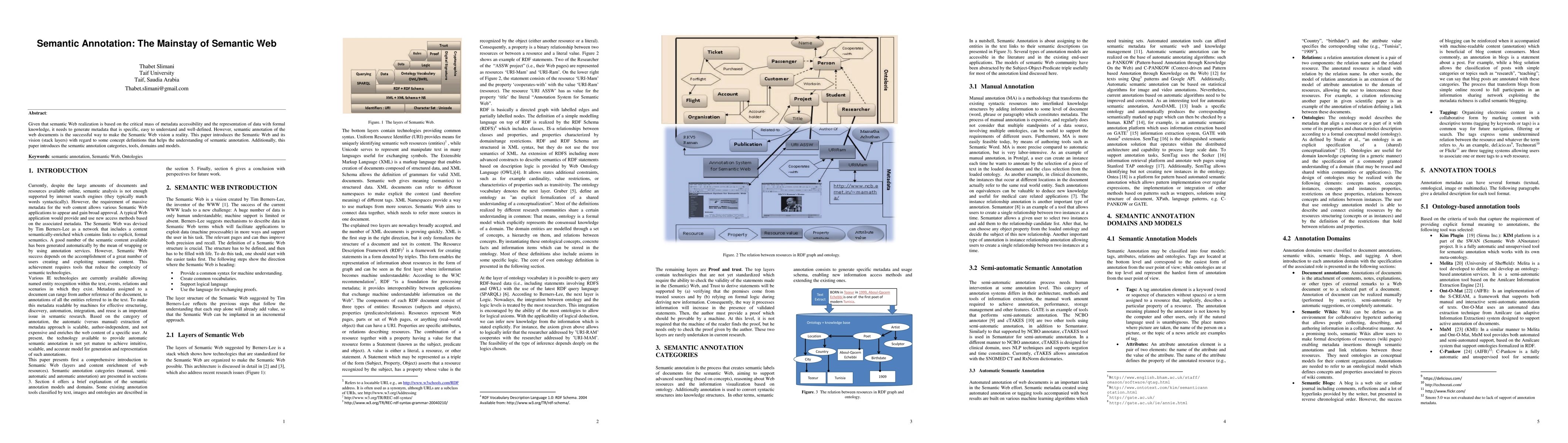 This paper explores the essential role of semantic annotation in achieving the Semantic Web vision, emphasizing its importance in generating specific, understandable, and well-defined metadata. It outlines the concept, categories, tools, domains, and models related to semantic annotation.