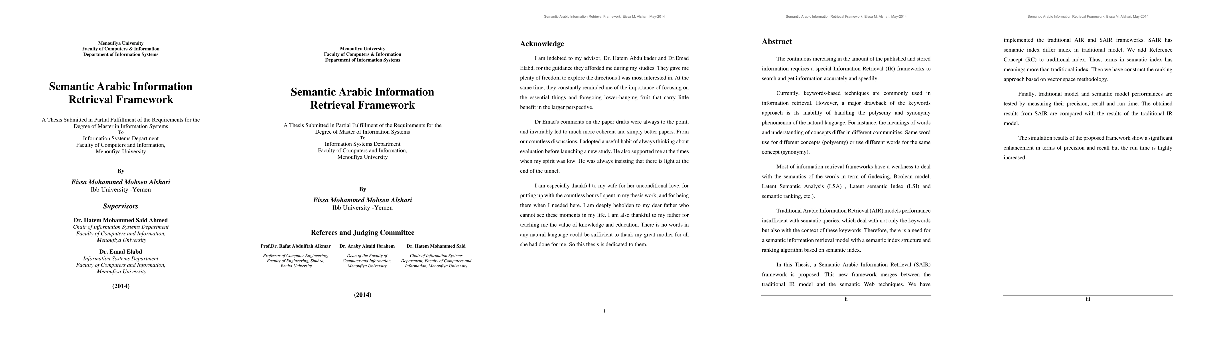 This paper proposes a Semantic Arabic Information Retrieval Framework to address the limitations of traditional keyword-based retrieval methods, particularly in handling polysemy and synonymy in natural language. It aims to improve accuracy by incorporating semantic indexing and ranking algorithms that consider the context and meaning of words.