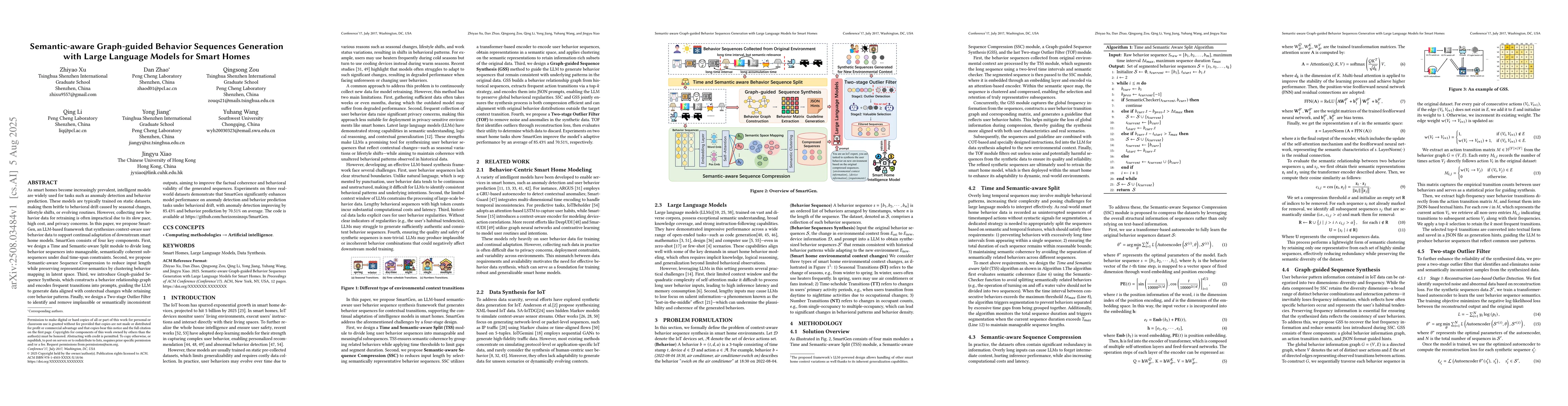 As smart homes become increasingly prevalent, intelligent models are widely used for tasks such as anomaly detection and behavior prediction. These models are typically trained on static datasets, making them brittle to behavioral drift caused by seasonal changes, lifestyle shifts, or evolving routines. However, collecting new behavior data for retraining is often impractical due to its slow pace, high cost, and privacy concerns. In this paper, we propose SmartGen, an LLM-based framework that synthesizes context-aware user behavior data to support continual adaptation of downstream smart home models. SmartGen consists of four key components. First, we design a Time and Semantic-aware Split module to divide long behavior sequences into manageable, semantically coherent subsequences under dual time-span constraints. Second, we propose Semantic-aware Sequence Compression to reduce input length while preserving representative semantics by clustering behavior mapping in latent space. Third, we introduce Graph-guided Sequence Synthesis, which constructs a behavior relationship graph and encodes frequent transitions into prompts, guiding the LLM to generate data aligned with contextual changes while retaining core behavior patterns. Finally, we design a Two-stage Outlier Filter to identify and remove implausible or semantically inconsistent outputs, aiming to improve the factual coherence and behavioral validity of the generated sequences. Experiments on three real-world datasets demonstrate that SmartGen significantly enhances model performance on anomaly detection and behavior prediction tasks under behavioral drift, with anomaly detection improving by 85.43% and behavior prediction by 70.51% on average. The code is available at https://github.com/horizonsinzqs/SmartGen.
