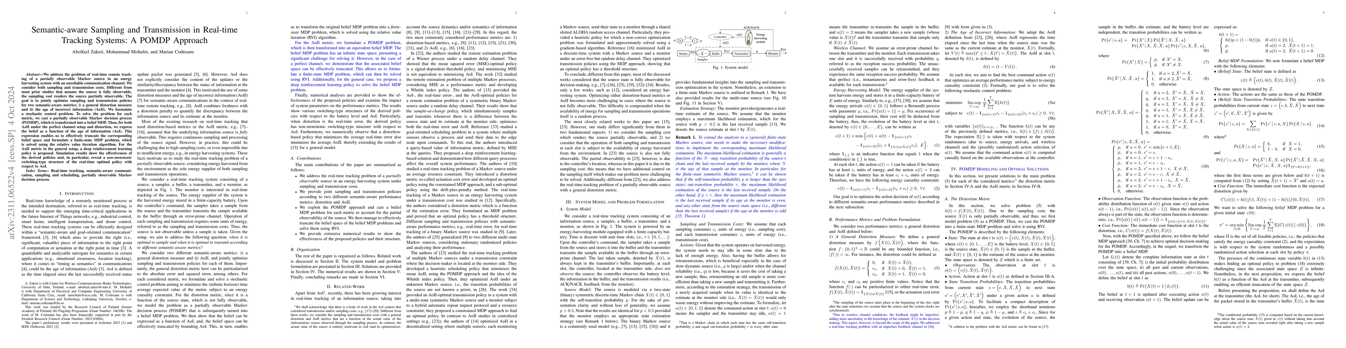 This paper optimizes sampling and transmission policies in energy harvesting systems for real-time tracking of partially observable Markov sources, minimizing both costs. It introduces a POMDP approach to address semantic-aware metrics: general distortion and age of incorrect information (AoII), solved via belief MDP transformation and reinforcement learning, revealing a non-monotonic optimal policy structure.