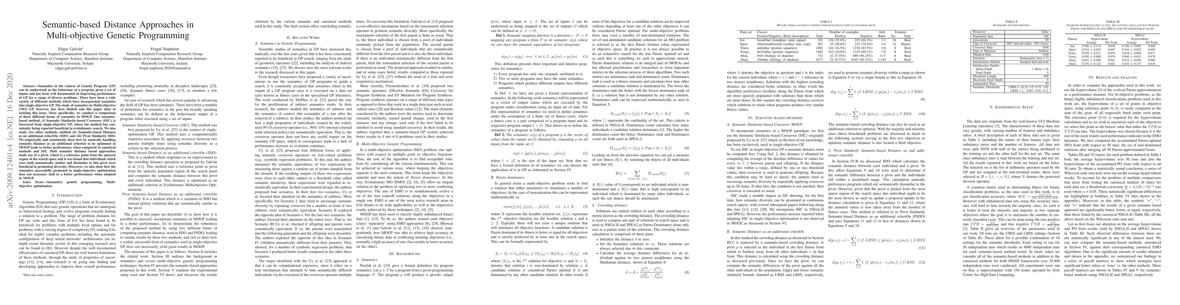 This paper investigates the application of semantics in Multi-objective Genetic Programming (MOGP) by comparing three semantic-based approaches: Semantic Similarity-based Crossover, Semantic-based Distance as an additional criterion, and Pivot Similarity SDO. The results show that incorporating semantic distance as an additional optimization criterion leads to better performance and diversity than traditional methods.