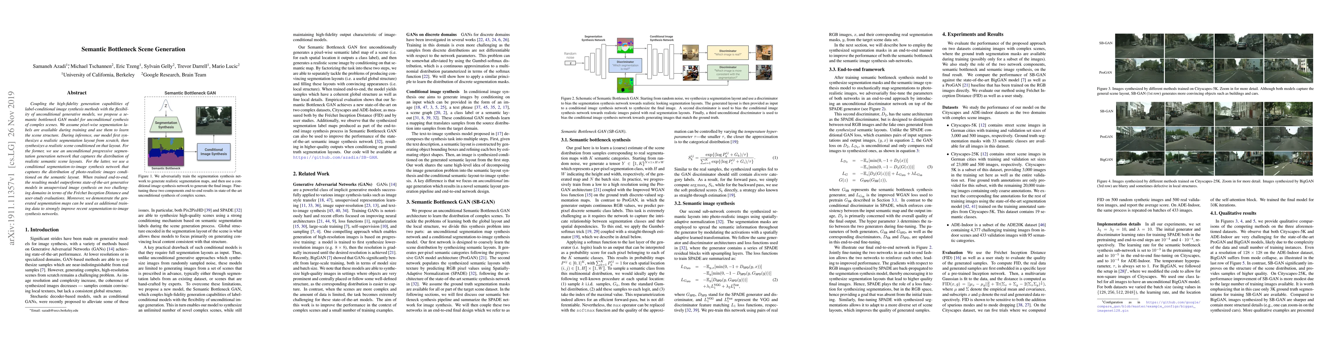 Researchers propose a new approach to generating complex scenes using a semantic bottleneck GAN model that combines label-conditional image synthesis with unconditional generative models. Their method outperforms state-of-the-art models in unsupervised image synthesis and demonstrates improved performance when using segmentation maps as additional training data.