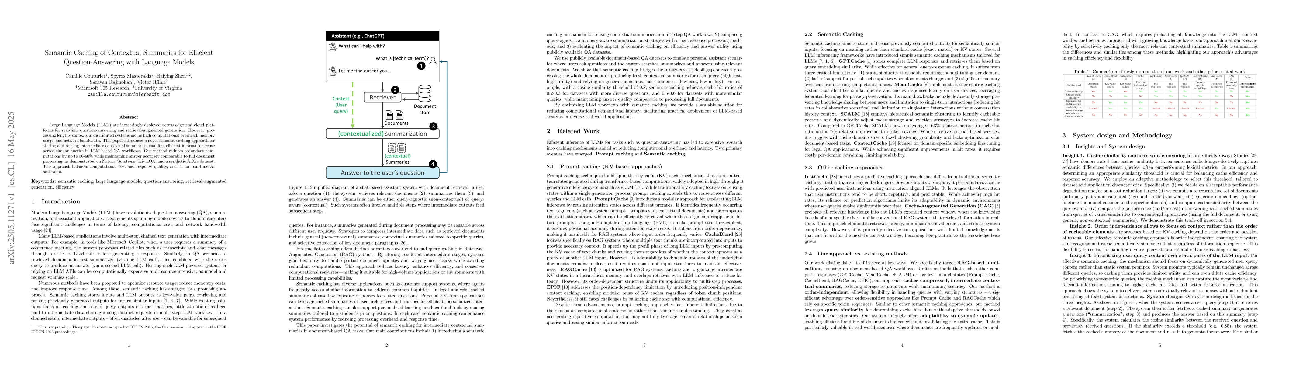 The paper introduces a semantic caching approach for storing and reusing intermediate contextual summaries in LLM-based QA workflows, reducing redundant computations.