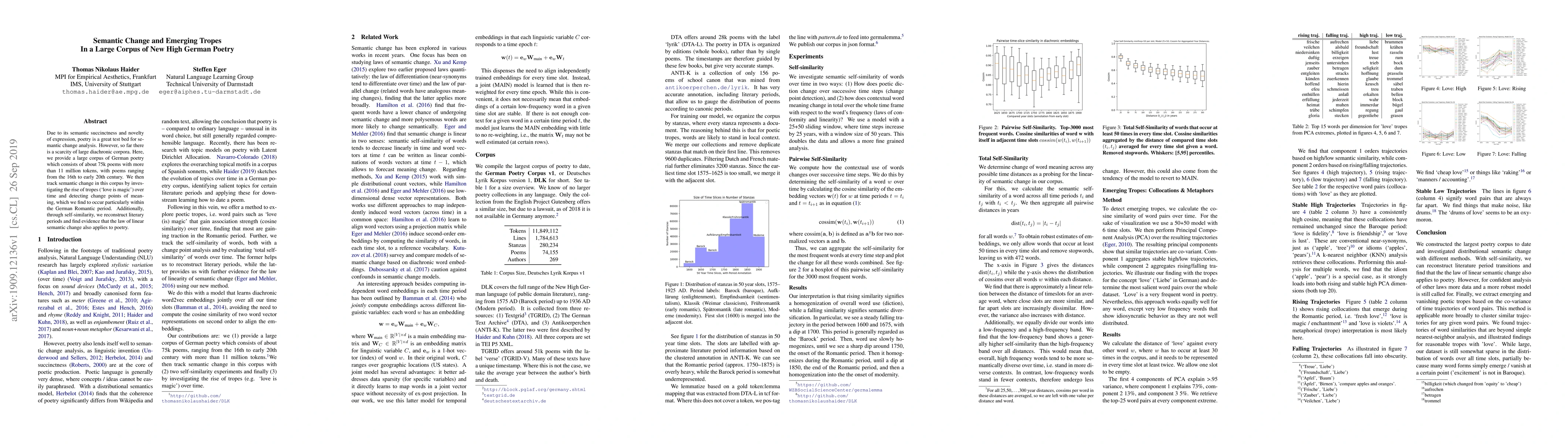 This study analyzes semantic change in a large corpus of German poetry from the 16th to early 20th century, revealing the rise of tropes during the Romantic period and supporting linear semantic change.
