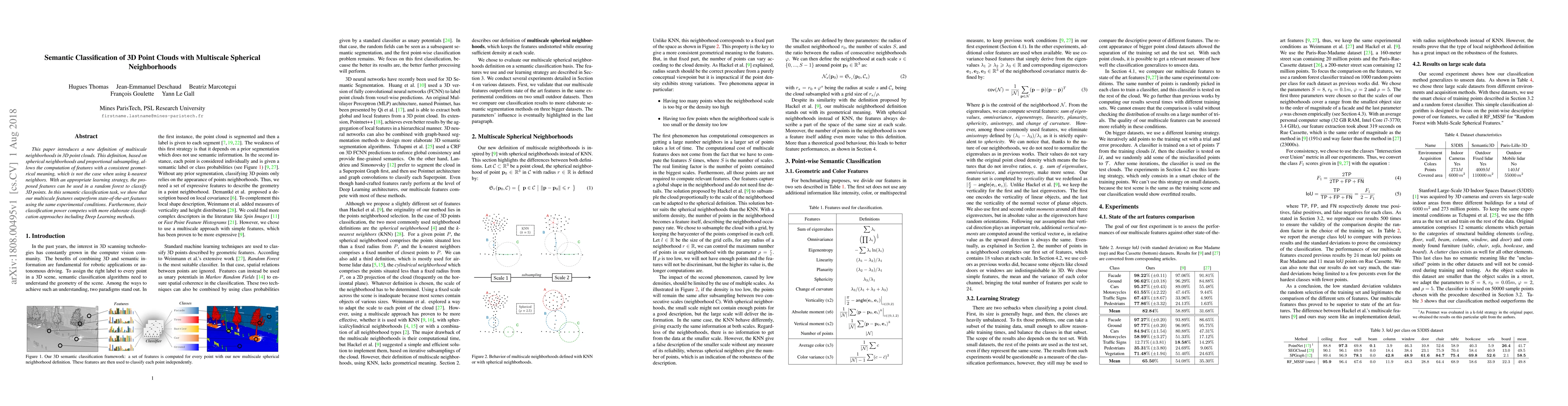 Researchers introduced a new method for analyzing 3D point clouds that outperforms existing methods in semantic classification tasks, using multiscale spherical neighborhoods with proportional subsampling.