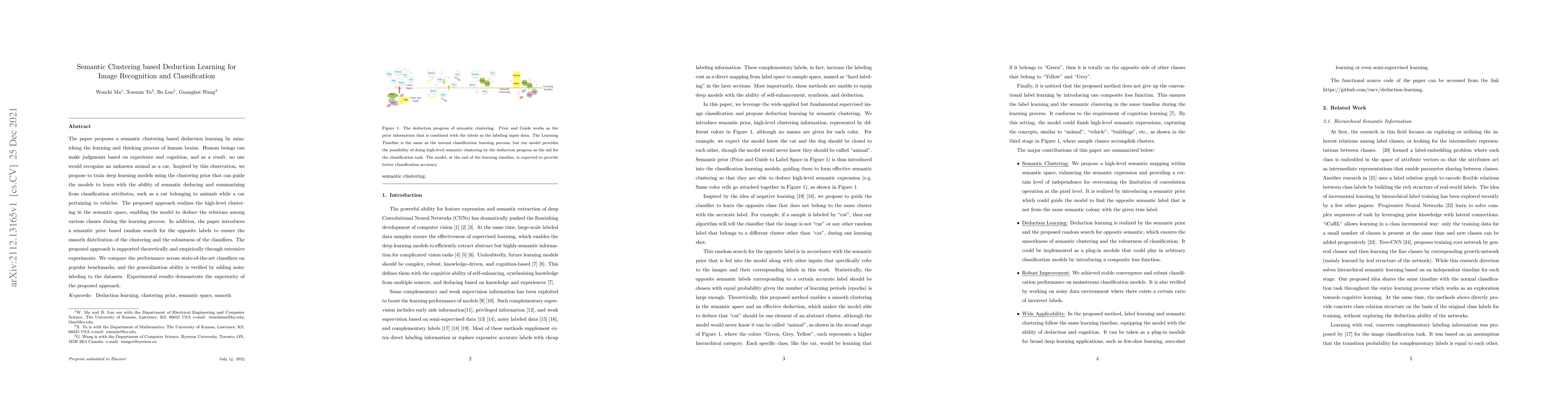 The paper introduces a semantic clustering based deduction learning method to enhance image recognition and classification by mimicking human cognitive processes. This approach trains deep learning models using clustering priors to enable semantic deducing and summarizing, improving the generalization and robustness of classifiers.